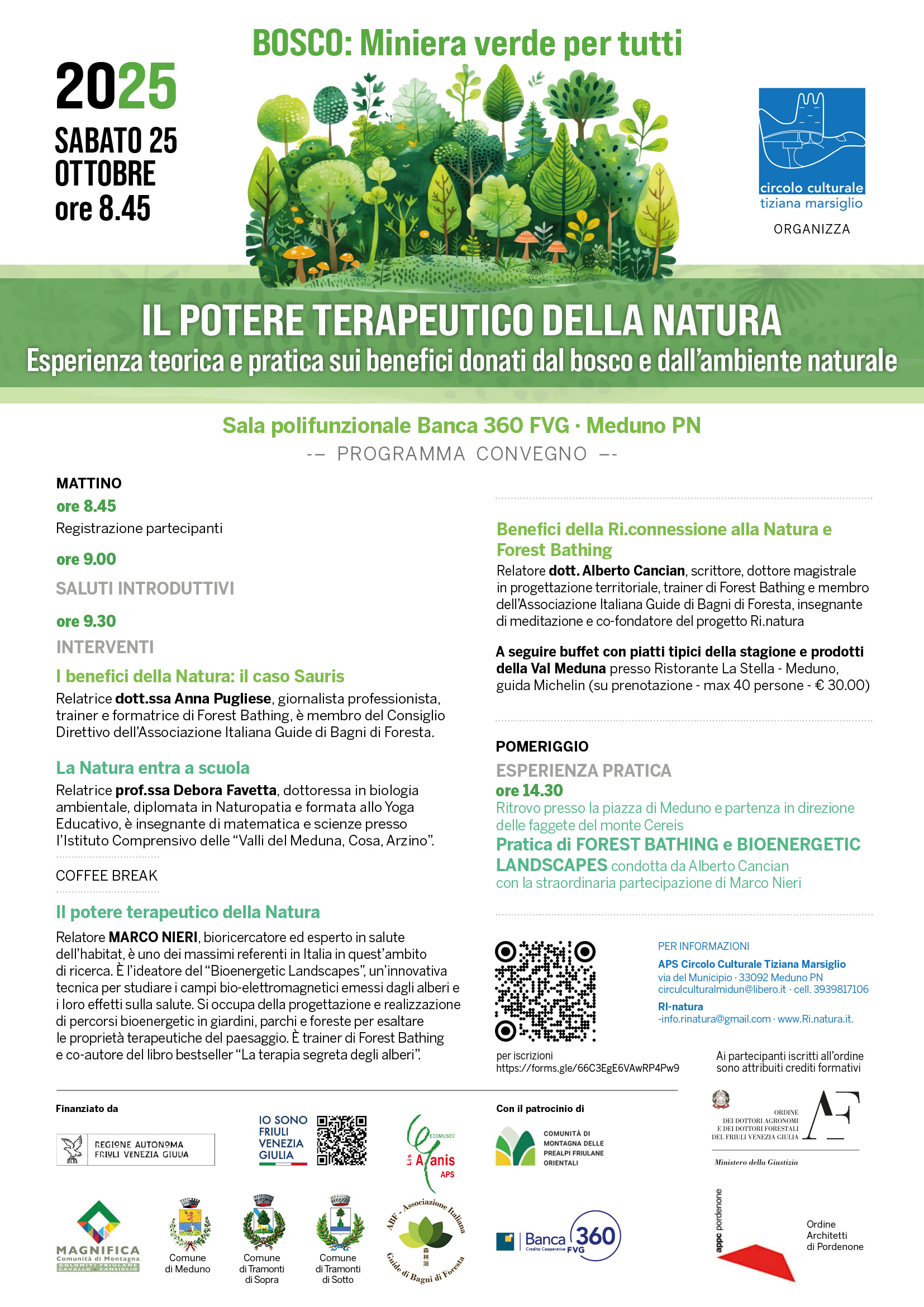 Già ospite di Ri.natura nel 2022, NIERI ritorna in Val Meduna, e più precisamente a Meduno, per il convegno organizzato dal Circolo Culturale Tiziana Marsiglio, che alternerà una mattinata di teoria a un pomeriggio di pratica esperienziale.